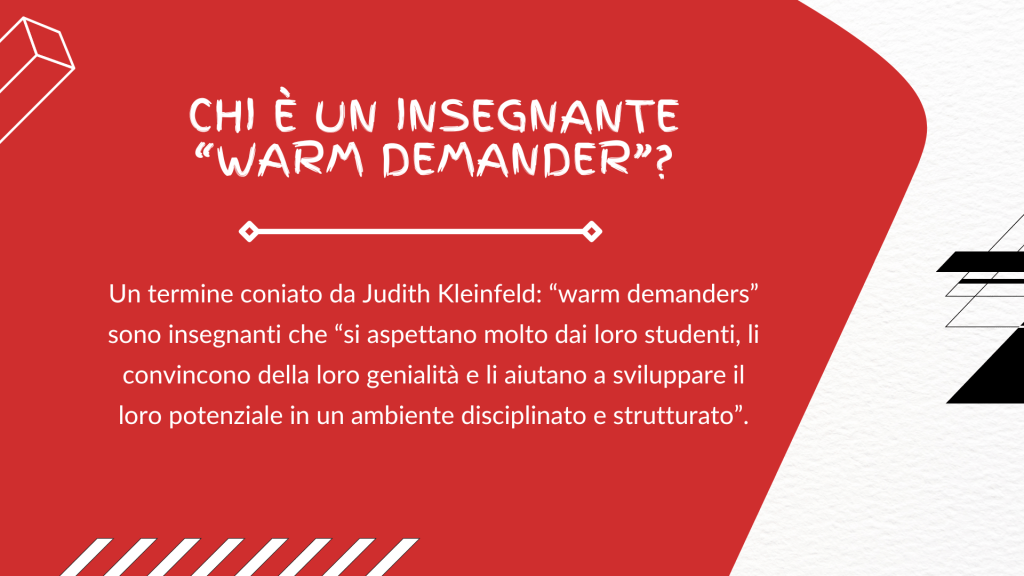 Nel suo articolo del 1975 intitolato “Effective Teachers of Eskimo and Indian Students”, Judith Kleinfeld descrisse gli insegnanti più efficaci come quelli che: