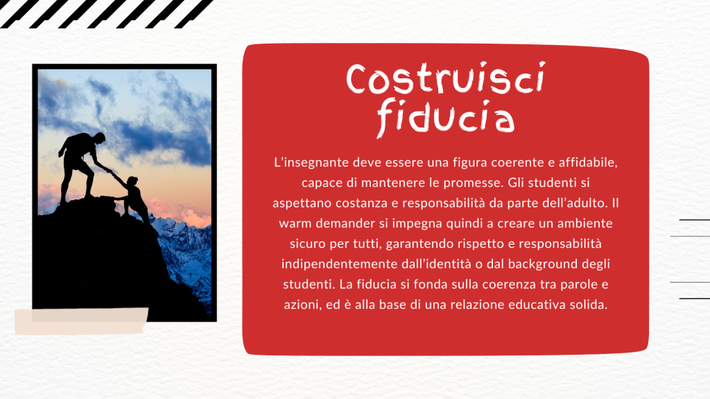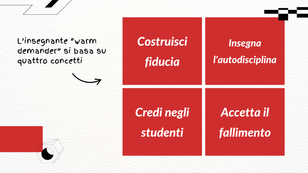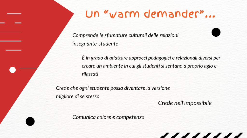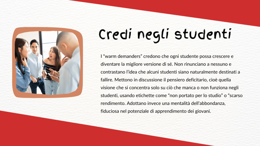 “dimostrano calore umano e interesse autentico per i propri studenti, pur mantenendo aspettative alte e disciplina ferma e rispettosa.”