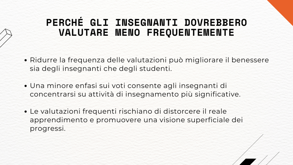 Slides riassuntive del seguente articolo: https://www.edutopia.org/article/why-teachers-should-grade-less-frequently