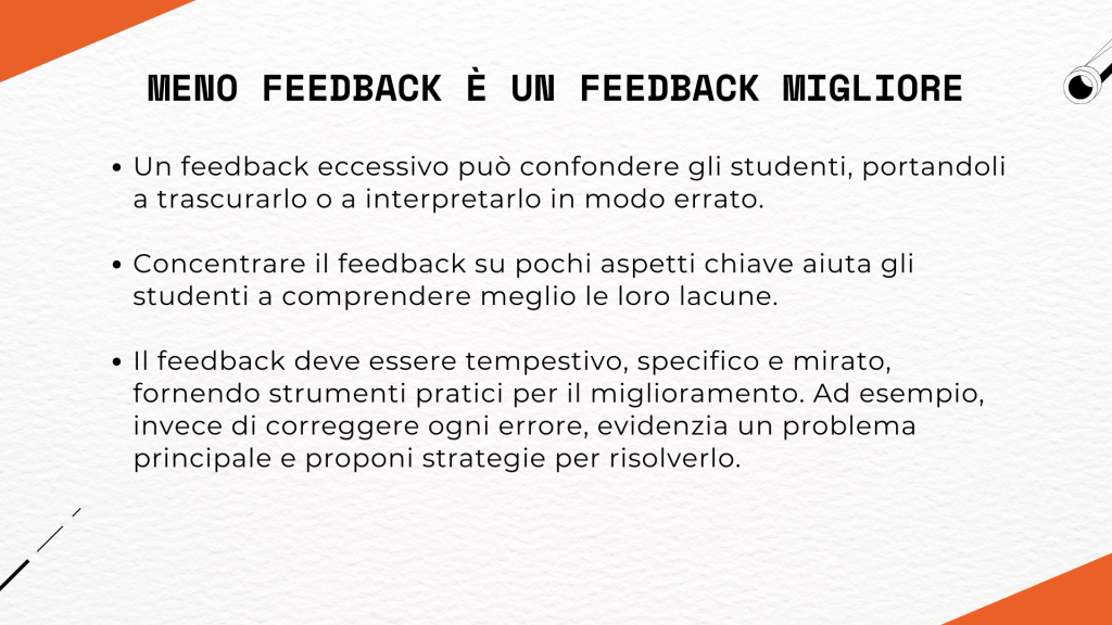 Riscrittura in base al feedback: dopo aver dato il feedback, chiedi agli studenti di rivedere il loro lavoro, fare delle modifiche concrete in base ai suggerimenti ricevuti e di riscrive una parte di esso.