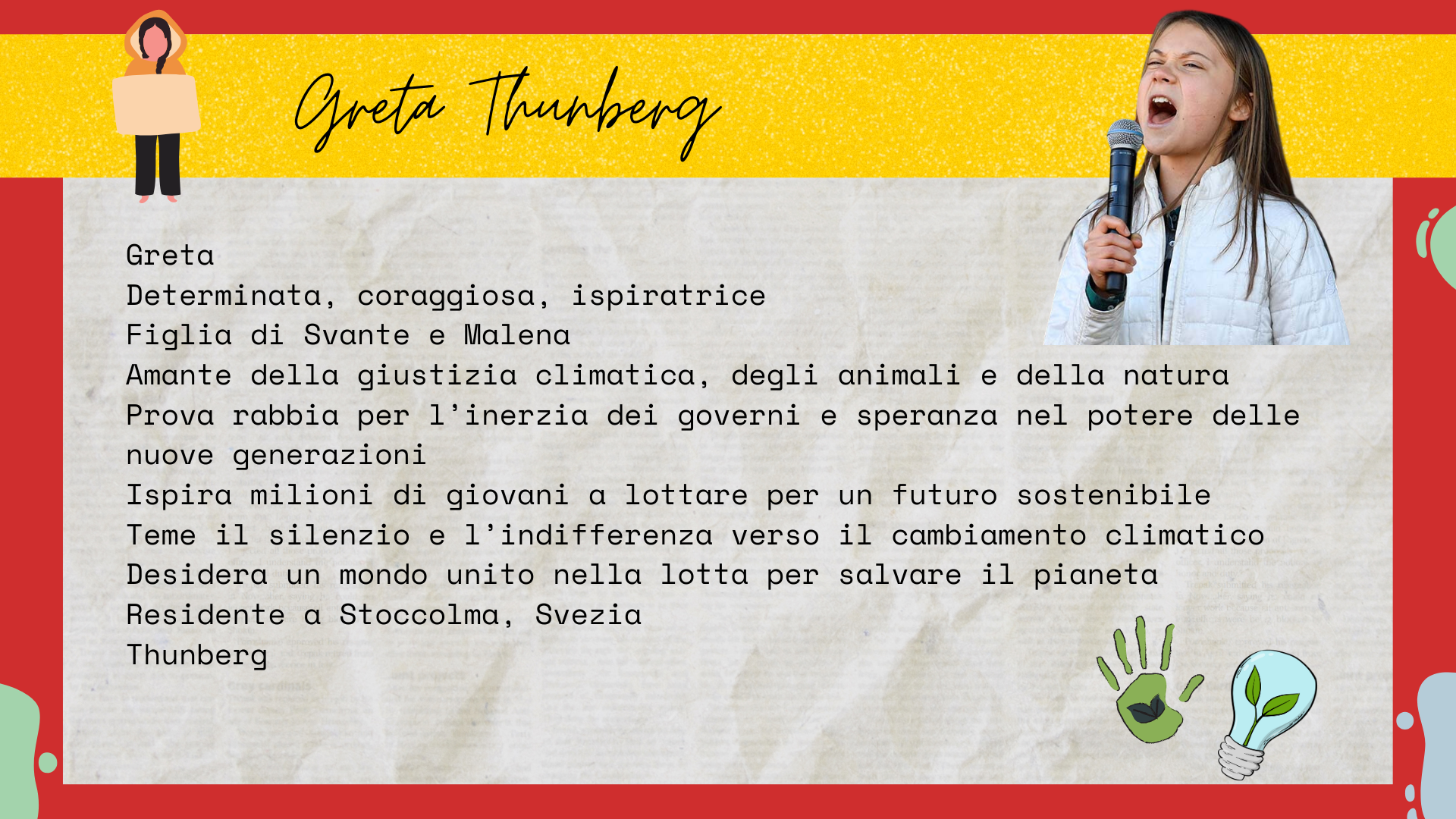 - Nome del soggetto (ad esempio lo studente, un personaggio o una figura storica).