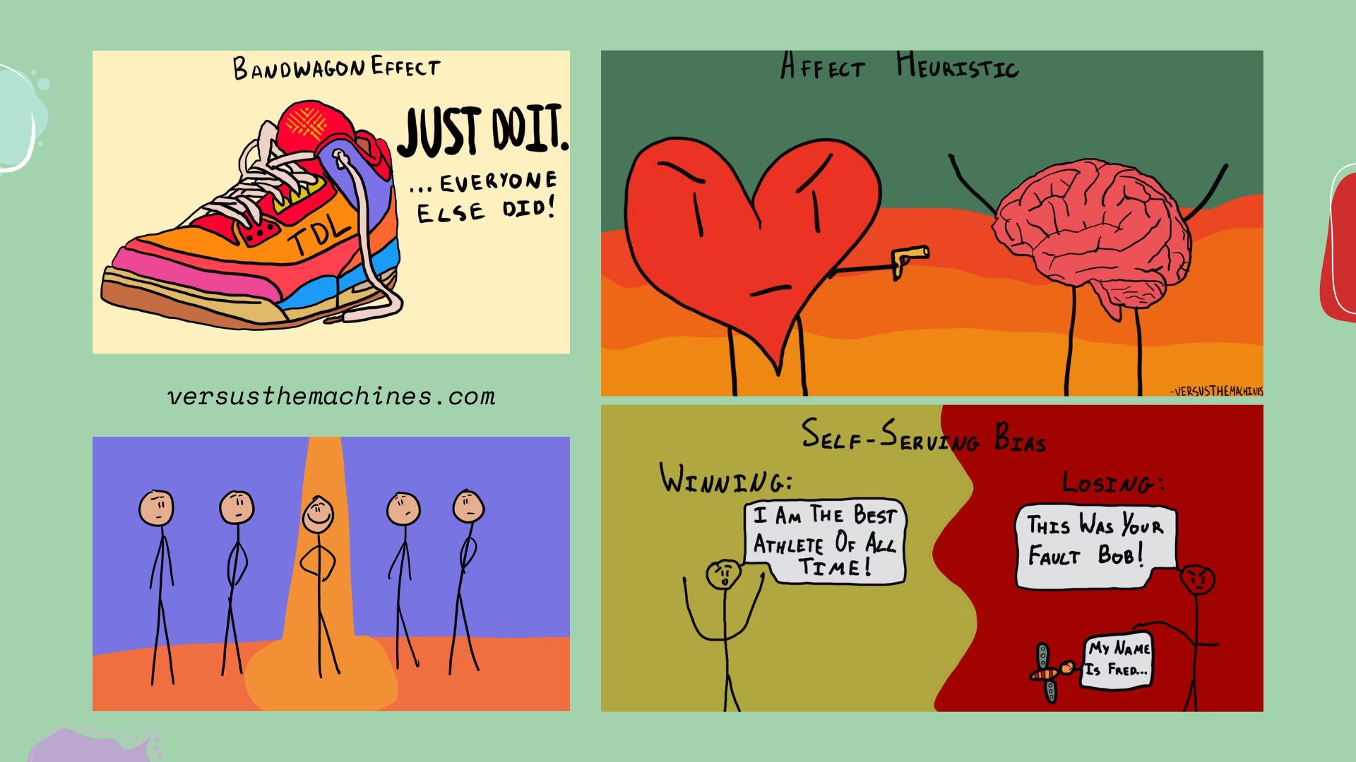 - Bias carrozzone (Bandwagon effect): porta le persone ad adottare idee o atteggiamenti semplicemente perché lo fanno in molti. Gli studenti potrebbero tendere ad adeguarsi alle opinioni o alle scelte della maggioranza, solo perché sono percepite come popolari. Di conseguenza, rinunciano a esprimere idee originali o compiere scelte personali, per timore di sentirsi esclusi.